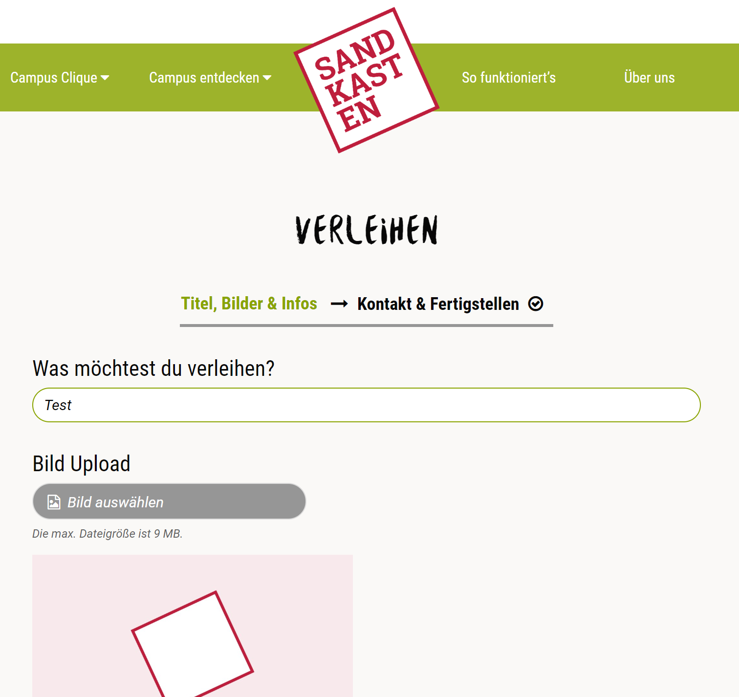 Wenn du als Organisation mehrere Gegenstände zum Verleih zur Verfügung stellen möchtest, ist es sinnvoll, dass ihr euch ein eigenes Profil unter “Organisationen” anlegt. Hierfür musst du einfach einen kleinen Beschreibungstext sowie ein Logo/Bild per Mail an das Team hinter der Sandkasten-Plattform senden.