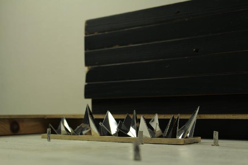 Auf dem Universitätsplatz sammeln sich jeden Tag unzählige Studierende. Sie suchen ihre Ziele auf und an diesem Platz oder müssen ihn überqueren um zu ihrem Ziel zu gelangen. Eine Analyse der Wege und Aufenthaltsorte der Studierenden auf dieser Plattform ergibt in Zeichnung umgesetzt ein Muster aus Dreiecken. Die Dreiecke die sich in den Räumen zwischen den Wegen bilden, werden als Spiegelkonstruktion im Brunnen installiert. Die Pyramiden stechen als riesige Scherben aus dem Brunnen heraus und spiegeln die moderne Architektur zerbrochen wieder.