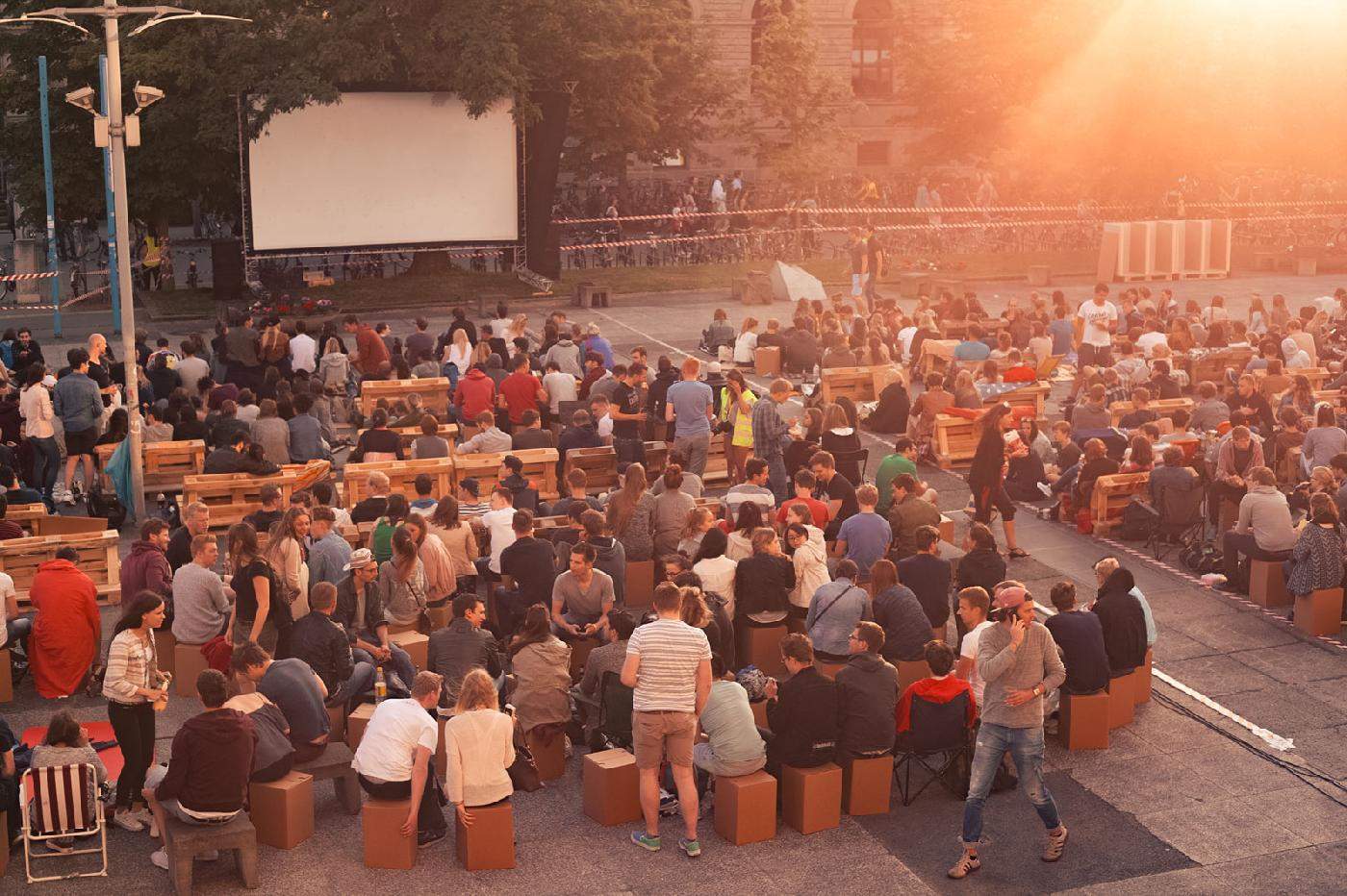 Die Idee? Ein Freiluftkino auf dem Universitätsplatz zwischen Altgebäude, Audimax, Unibibliothek und Forumsgebäude. An drei ausgewählten Tagen zeigen wir Filme auf einer Leinwand und verwandeln den Hauptcampus in ein Filmtheater.