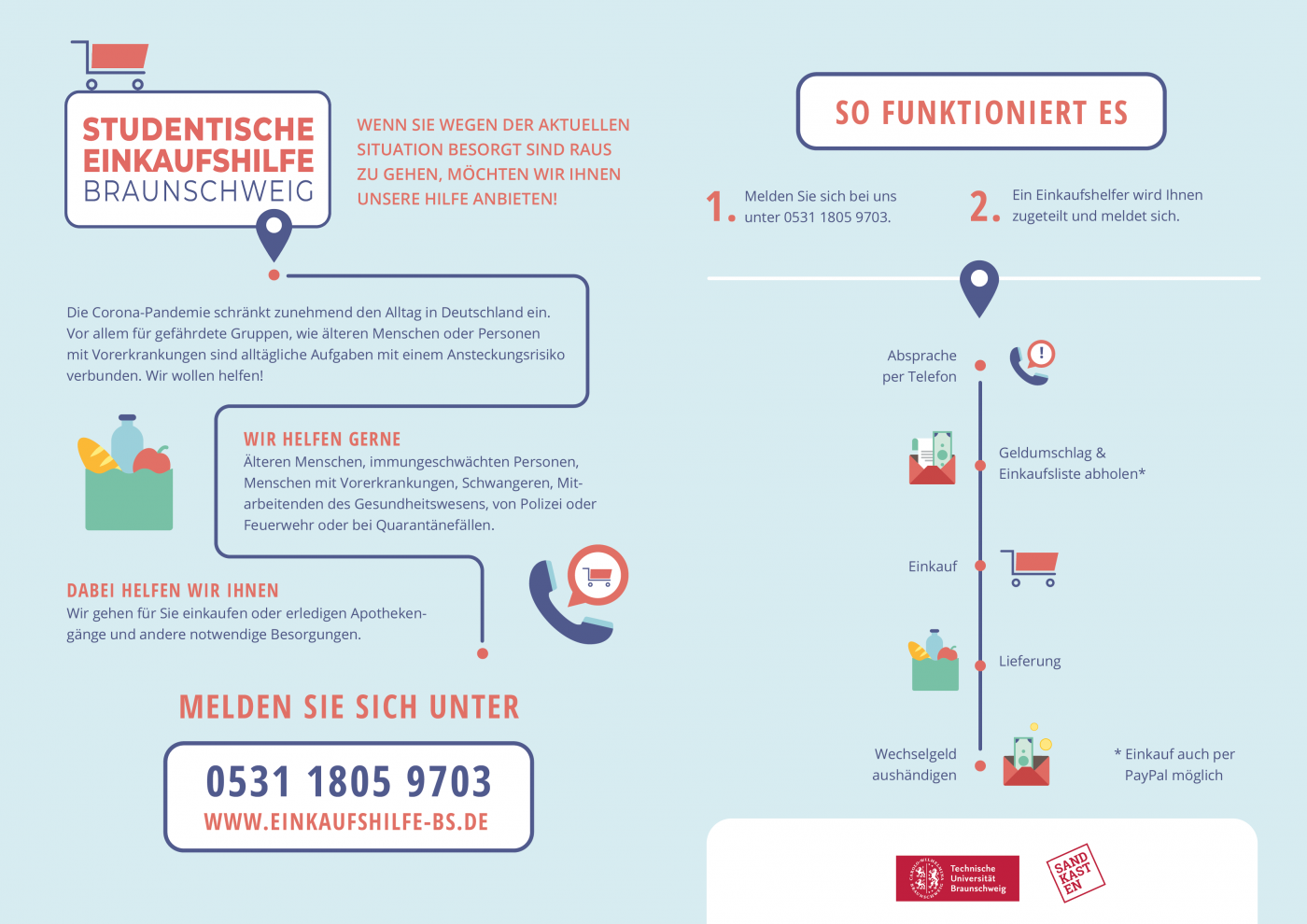 Die Studentische Corona Einkaufshilfe Braunschweig hat ihr Unterstützungsngebot zum 31. Dezember 2021 eingestellt.