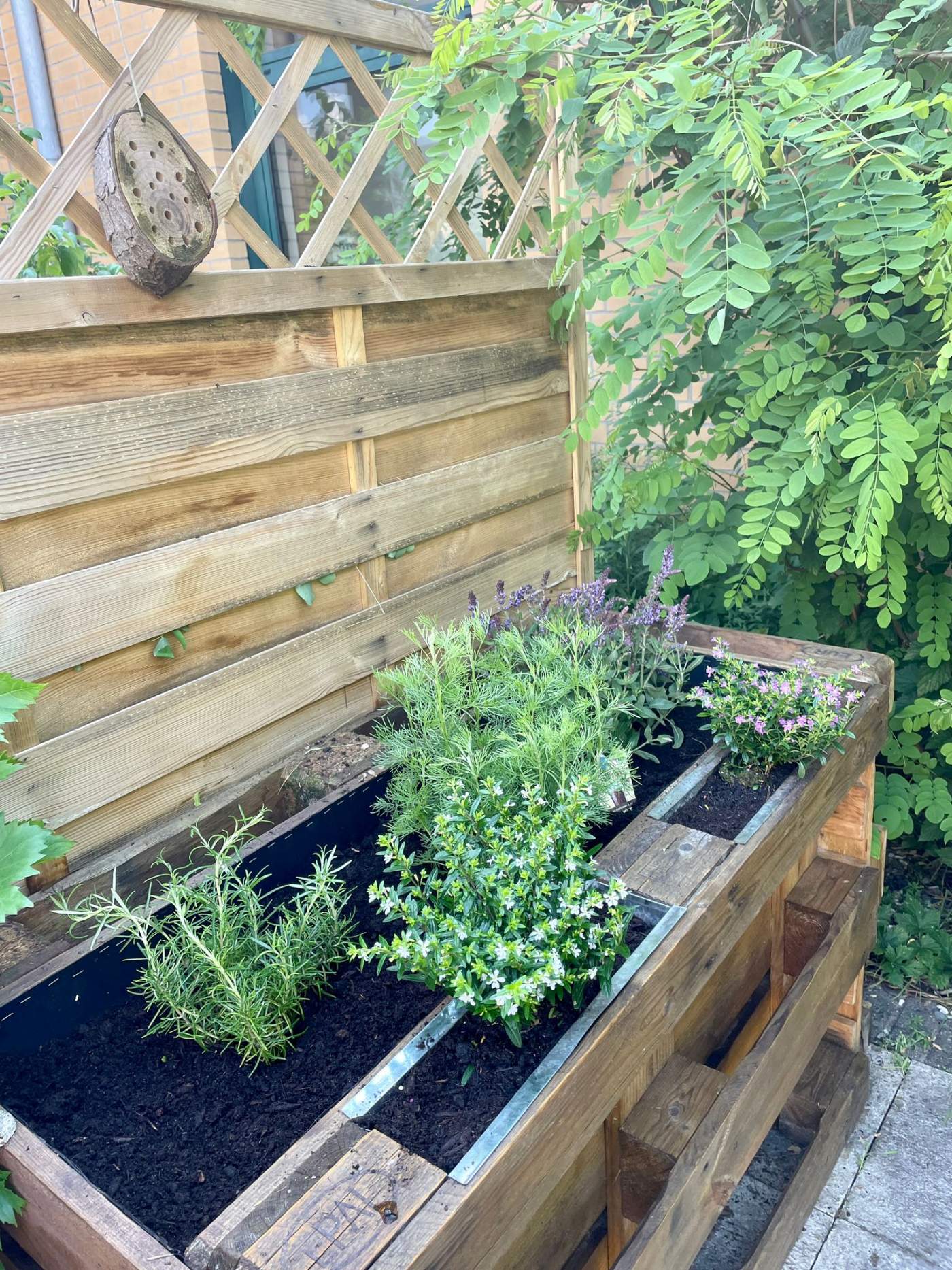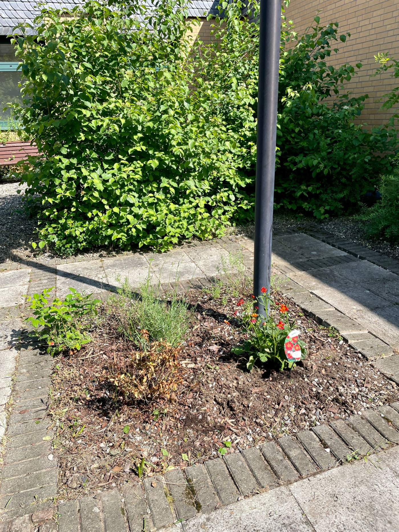 Das heißt konkret, dass wir die bepflanzten Bereiche vom Unkraut befreien wollen und Pflanzen ersetzen, wenn dies notwendig ist. Zudem soll der bisher schon recht grüne Bereich auch bunt werden. Das heißt, dass wir durch Frühblüher und Blumen für den Sommer den Patio noch einladender gestalten wollen, wodurch auch gleich eine Nahrungsquelle für die Bewohner der Insektenhotels geschaffen wird, die in der Umgebung wenig Blühendes finden. Zu guter Letzt wollen wir einige kleine Reparaturen angehen und hierbei zum Beispiel eine kaputte Lampenabdeckung ersetzen.