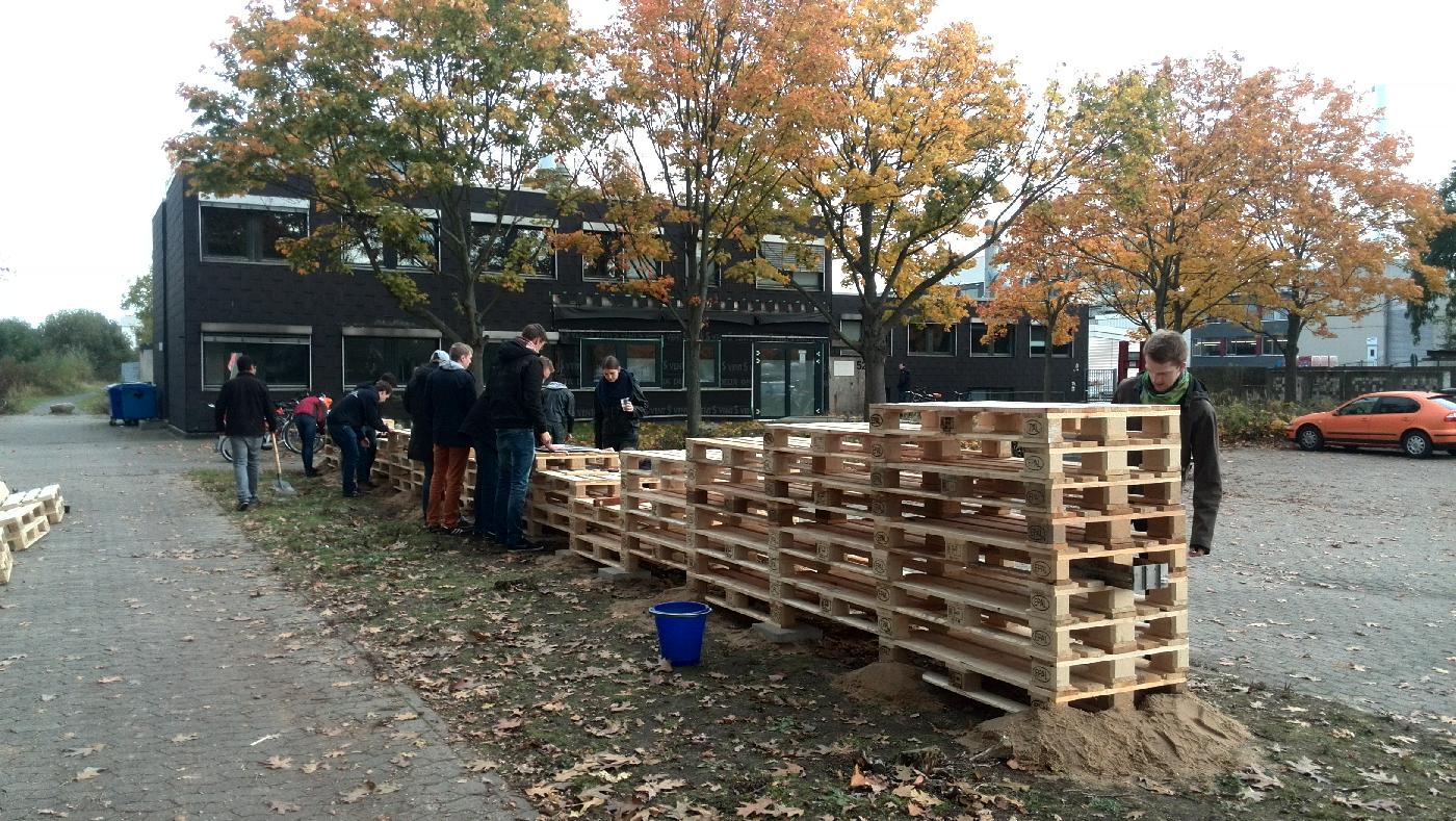 Die MitarbeiterInnen des Institutes für Stahlbau haben in Kooperation mit Sandkasten ein Hotel für unsere kleinen Freunde auf die Beine gestellt. Auf den zugehörigen Palettenbänken kann der Kaffee oder Tee gemütlich im Freien genossen werden. Vielleicht haltet ihr ja noch ein Pläuschen mit dem ein oder anderen Hotelgast!