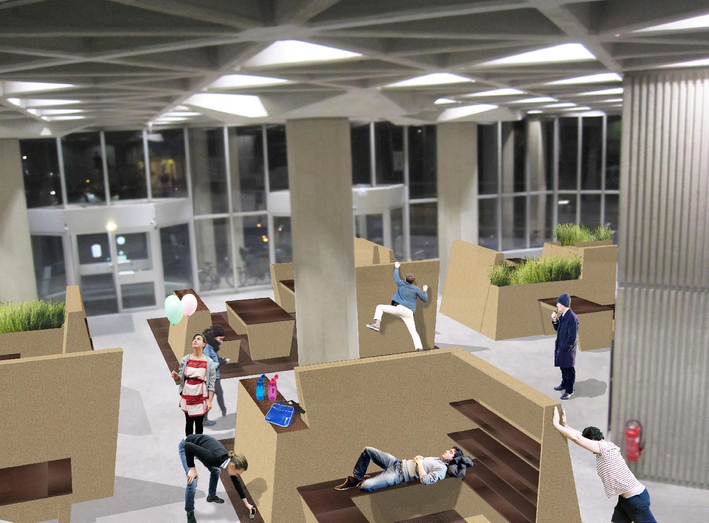 Das Foyer des BS4 bietet viel Platz, glänzt gegenwärtig jedoch durch gähnende Leere. Wir möchten für diesen Ort gern Kreativmöbel entwickeln und aufstellen um einen neuen Arbeits- und Entspannungsbereich an der TU zu schaffen. Ein Ort für Lerngruppen, Präsentationen oder auch kleinere Workshopformate. Durch die multifunktionalen Möbel soll der Raum den jeweilgen Bedürfnissen angepasst werden.