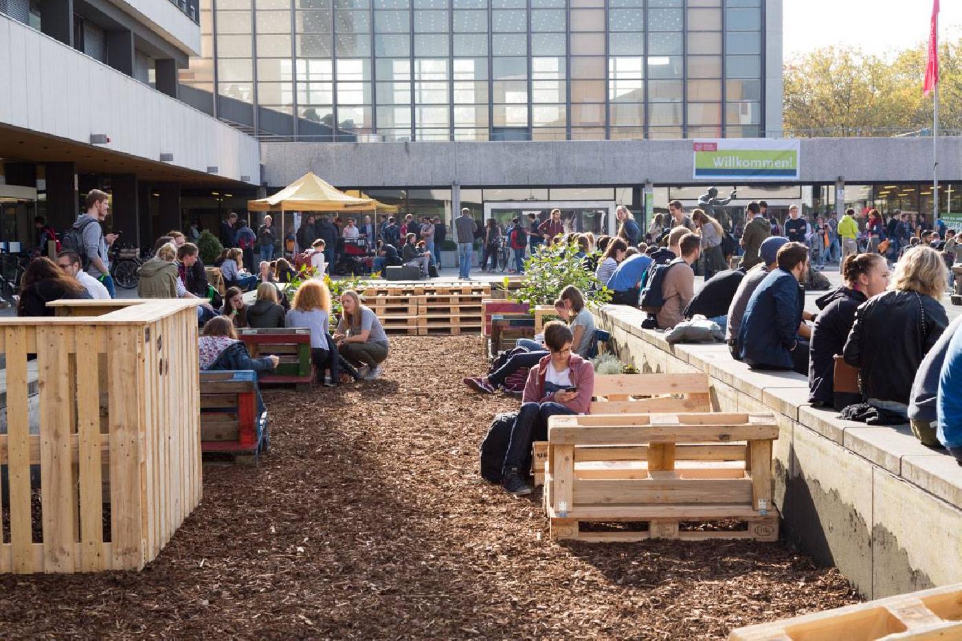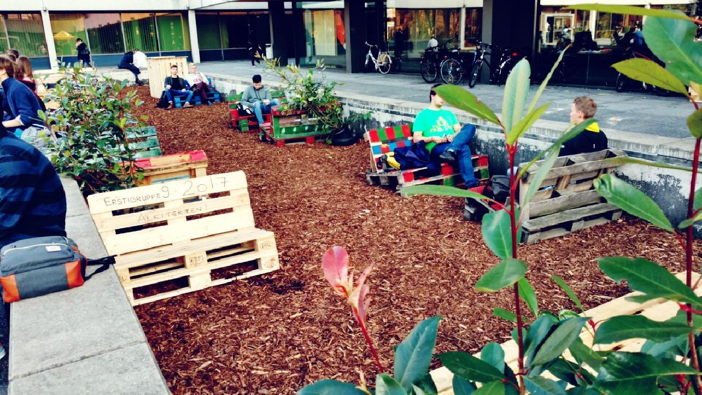 Der Brunnen am Universitätsplatz war weder mit Wasser befüllt noch anderweitig genutzt. Die Beschichtung ist aufgrund der Sonneneinstrahlung großflächig abgeplatzt war unansehnlich. An einigen Aktionstagen ist in Zusammenarbeit mit den Erstsemester_Innen, der ein oder anderen Fachschaft sowie allen Interessierten eine Umgestaltung geschehen. Die Oase25 ist nun mit Rindenmulch befüllt und lädt zum entspannen oder gemütlichen Kaffeetrinken ein. Der aus Europaletten konstruierte Aufgang kann als Bühne für Lesungen genutzt werden. Er ist sowohl zur "Oase25" als auch zum Universitätsplatz gerichtet nutzbar. Insgesamt hat die "Oase 25" eine Länge von 25 Metern.