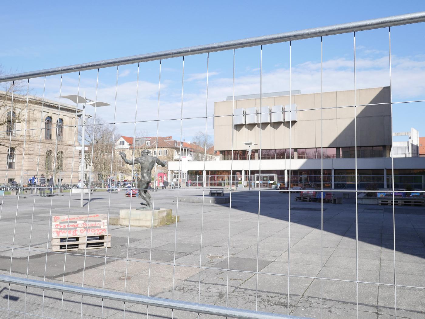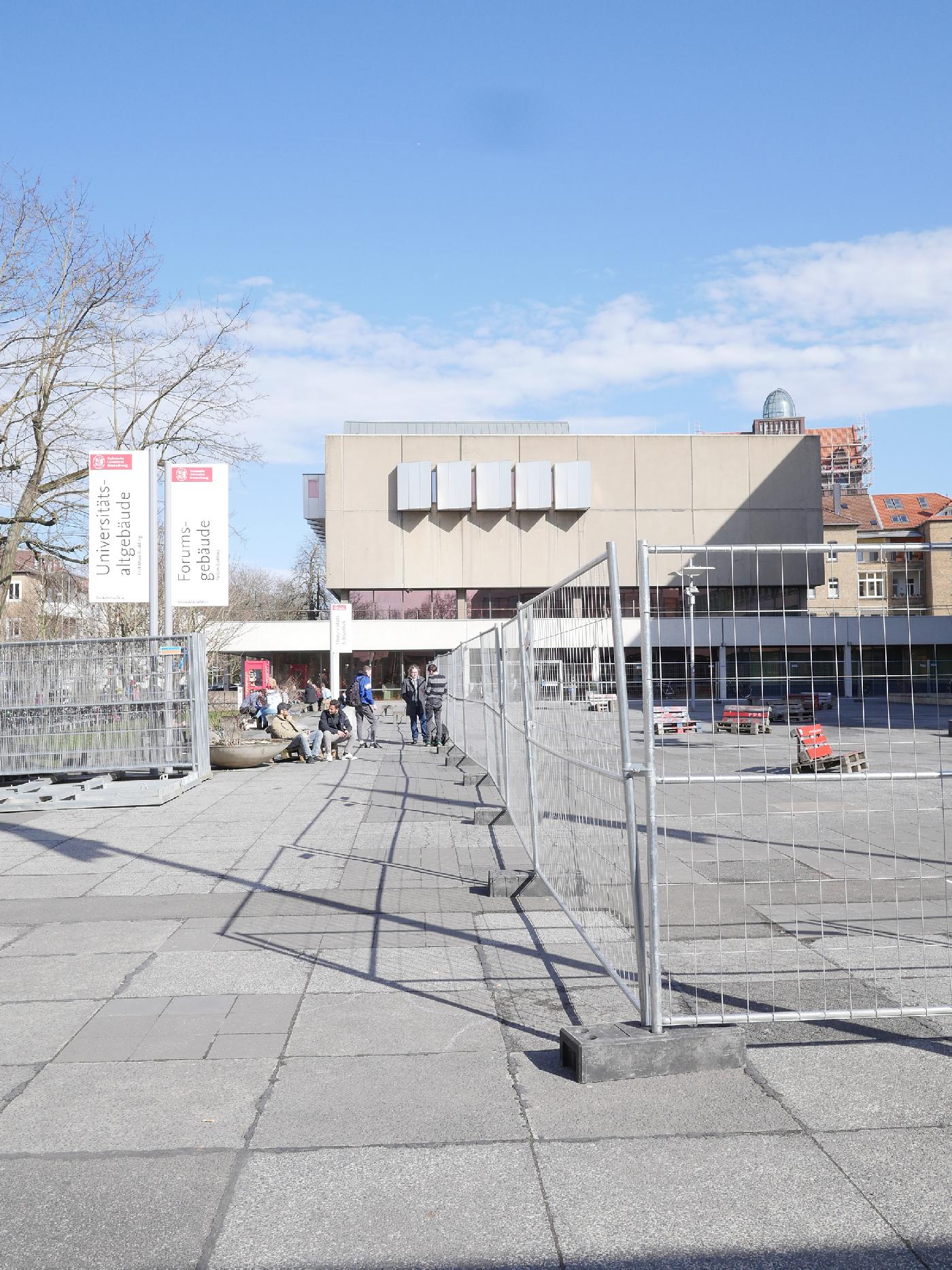 An einem sonnigen, warmen Tag den ganzen Universitätsplatz abzusperren hat nicht im entferntesten was mit Kunst zu tun, sondern ist einfach nur total sinnlos! Der Platz ist sonst weder leer noch sinnfrei, da er von den Studenten für die Pause genutzt wird. Wenn man mal an einem schönen Tag dort vorbeischaut sieht man den Platz rappelvoll. Sonst bin ich gerne offen für verschiedene Arten von Denkanstößen, aber das ist ja wohl einfach nur lächerlich. Traurig das sowas auch noch von der Uni geduldet wird.