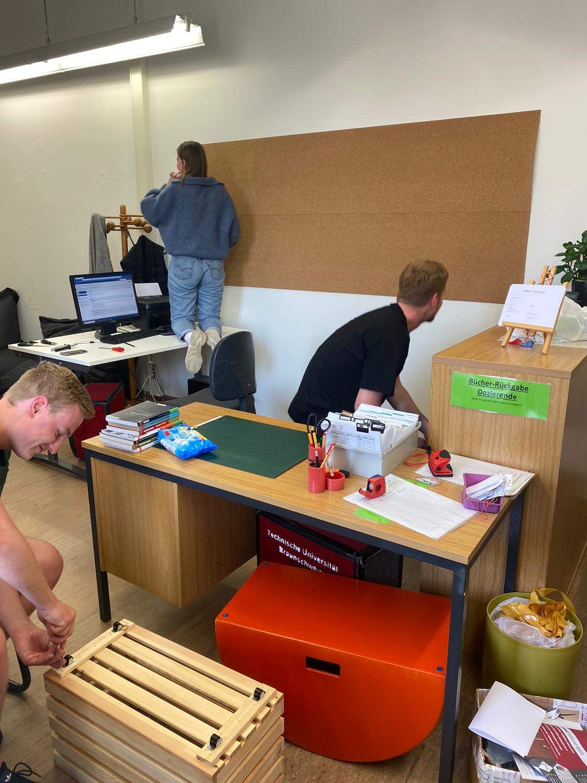 Seit Corona ist uns aufgefallen, dass der Andrang in der Bibliothek nicht mehr so groß ist wie früher und die StudentInnen nur noch selten hier verweilen. Wir haben uns überlegt, dass wir dem gerne entgegenwirken wollen, um der Bibliothek wieder etwas mehr Leben einzuhauchen. Die letzte Renovierung ist bereits mehrere Jahre her und es müssten dringend ein paar Umstrukturierungen stattfinden, um das Lernklima und den sozialen Austausch der StudentInnen angenehmer zu gestalten. Um dieses Ziel zu erreichen, würden wir gerne eine kleine Leseecke mit der Möglichkeit zum Büchertausch einrichten, sowie einen Platz für Gruppenarbeiten schaffen, an dem sich StundentInnen gerne zusammenkommen. Auch eine kleine Tee-Ecke soll künftig die Pausen etwas versüßen.