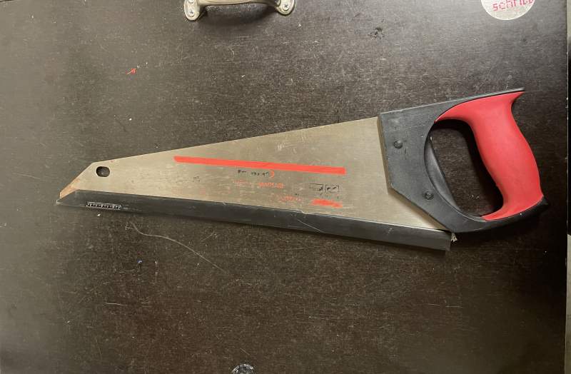 Eine Handsäge, a.k.a. Fuchsschwanz, kann für handwerkliche Arbeiten z.B. zur Umsetzung von Projekten genutzt werden. Es stehen drei Stück zur Verfügung.