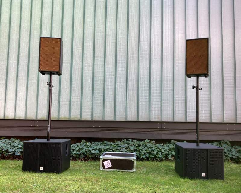 Die Soundanlage umfasst zwei Subwoofer und zwei Topteile und kann für kleinere Konzerte oder Partys genutzt werden. Die Anlage beschallt problemlos 200 Menschen.